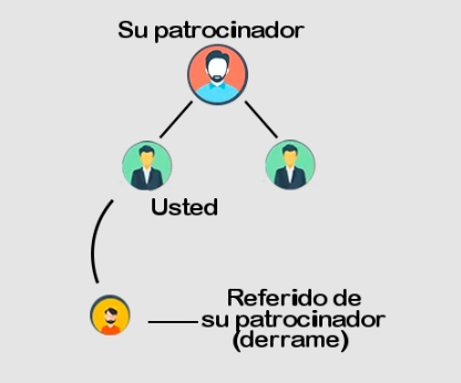 El derrame de referidos se genera en función de la intensidad de las actividades de promoción de usted o de los usuarios ubicados niveles arriba de la posición de usted. En estas circunstancias, en el primer nivel de su red de invitados usted puede tener referidos propios o referidos de personas ubicadas arriba de la posición que usted ocupa en la red general. Los referidos de usted los llamaremos "Referidos Directos" y los referidos de otras personas se denominarán "Referidos Indirectos".